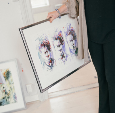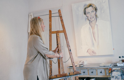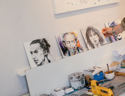 Ytterst välbekanta ansikten smyckar väggarna i Annika Jägfeldts kombinerade ateljé och galleri i Peppinge på Österlen.