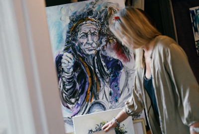 – Jag målar bara personer som jag själv tycker är intressanta. Jag tycker om folk som sticker ut hakan. Alla de här gubbarna lyssnar jag ju själv på. Jag är en rocktjej.
