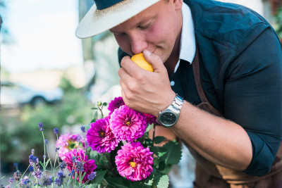 Högsäsongen är just avslutad på Karl Fredrik på Eklaholm. Vi sitter i trädgården en varm tisdagseftermiddag i början av september. Njuter av gassande sol och av ett lugn efter den storm som just börjat lägga sig. Eller…frågan är om det verkligen kommer att bli lugnt för en passionerad florist som lever sin dröm på Österlen?