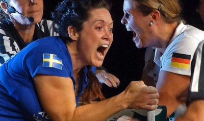 – De jag ser upp till mest inom armbrytningen är Fia Reisek och Malin Kleinsmith. De är helt olika varandra och det är det som är så häftigt. Fia är stark och seg, har brutit arm länge och har ett jättebra grepp, medan Malin är sjukt explosiv. Om man hade kunnat ha de två i ett hade det blivit en armbrytare som ingen hade kunnat slå. Jag har en bra relation med dem båda, framför allt med Malin, som har blivit en god vän även privat. Det är en häftig känsla när jag själv tävlar och två av världens bästa armbrytare står på golvet och skriker och peppar mig så mycket de kan. Ingen av dem har någonsin fått mig att känna att de inte vill att jag ska bli bättre. Tvärtom. De vill att jag ska utvecklas. Det är klart att det kanske skrämmer dem lite, men det gör ju också att de blir tvungna att träna för att bli bättre.